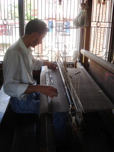 Am Webstuhl Sticken eines Schals Sticken eines Schals Teppich knuepfen Spinnen